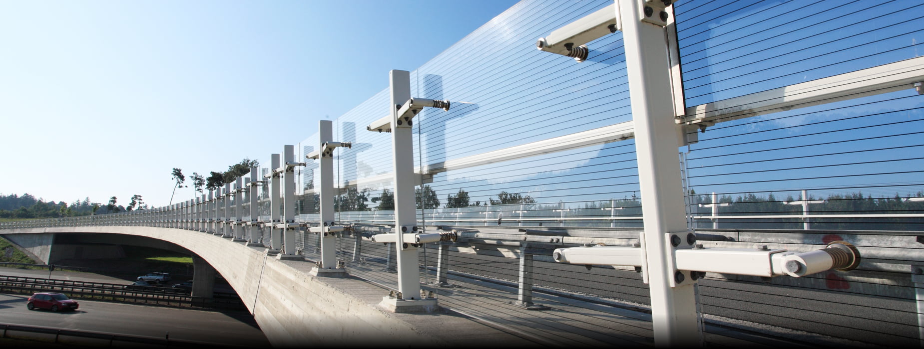 Punktowe mocowanie przezroczystych ekranów akustycznych to innowacyjne i unikalne rozwiązanie marki KOHLHAUER. Opatentowana i sprawdzona technologia zapewnia optymalne mocowanie płyt przezroczystych do smukłej konstrukcji nośnej za pomocą elementów sprężynowych. Kluczowa zaleta takiego systemu ekranów polega na połączeniu maksymalnej wytrzymałości konstrukcji i niemal całkowitej swobody widzenia. Wynika to z wyeliminowania słupów wsporczych oraz ramy paneli, które w mniejszym lub większym stopniu sposób ograniczają widoczność, jak to ma miejsce w przypadku klasycznych ekranów akustycznych.